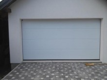 Garažna sekcijska vrata, L-žlijeb, površina SANDGRAINE RAL 9016, bijela boja.