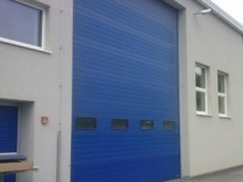 Industrijska sekcijska vrata, tip: SPU F42, plava boja, stucco završni sloj,ostakljenje tip A.